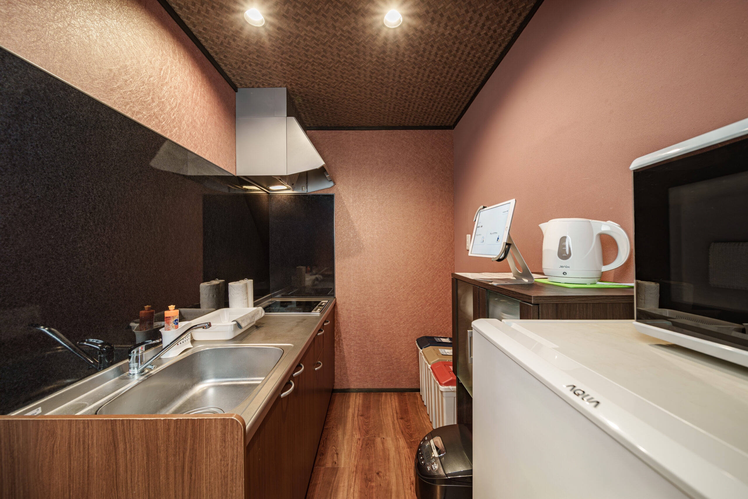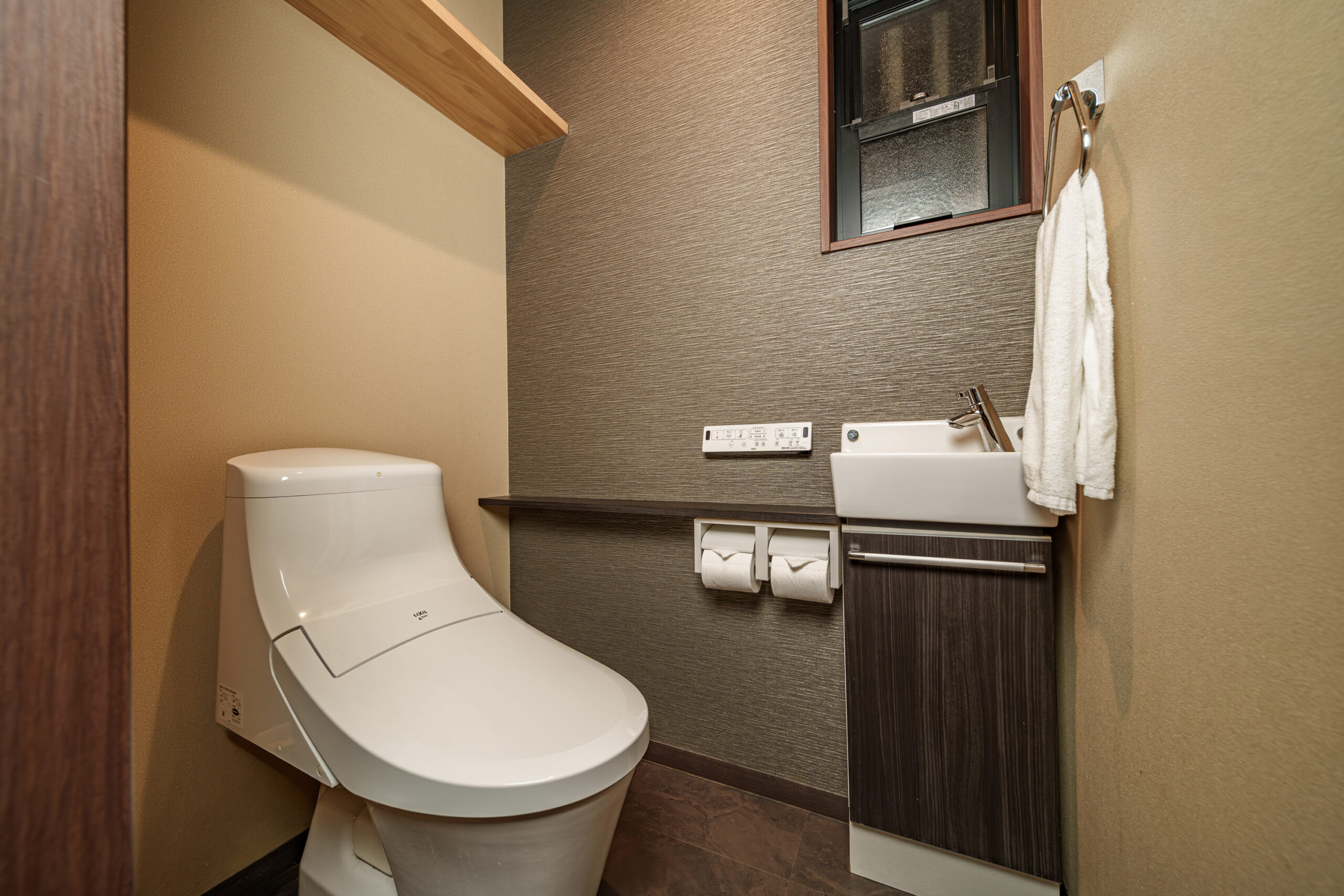 落ち着いた茶色を使ったおうちは温かみを加えより居心地がよいお宿です。