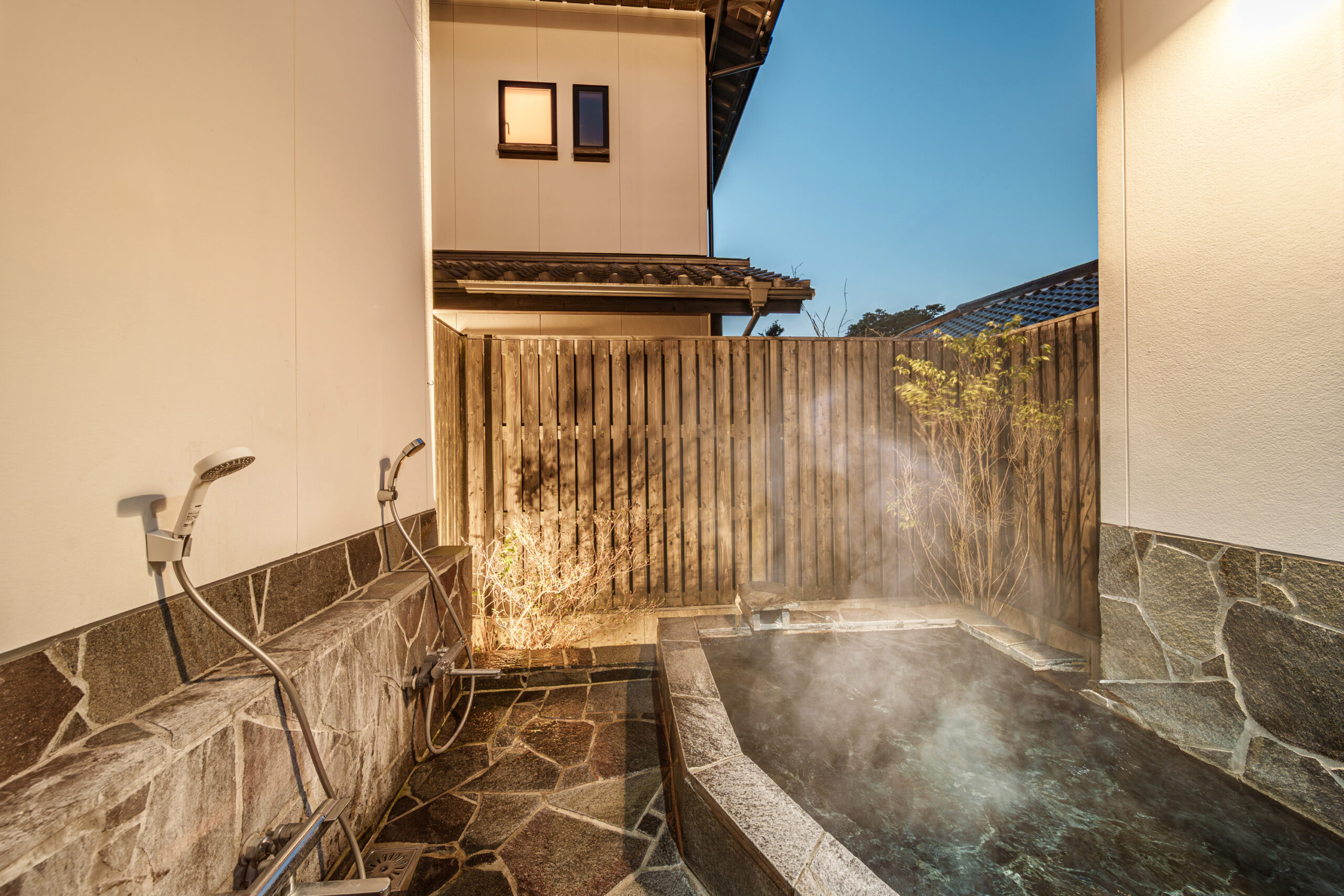 デザイナーズ新築戸建て!打たせ湯付き露天温泉の貸切り一軒家、気兼ねなくファミリーでゆっくり浸かれる広い露天風呂〜湯布の雫/夕凪♨