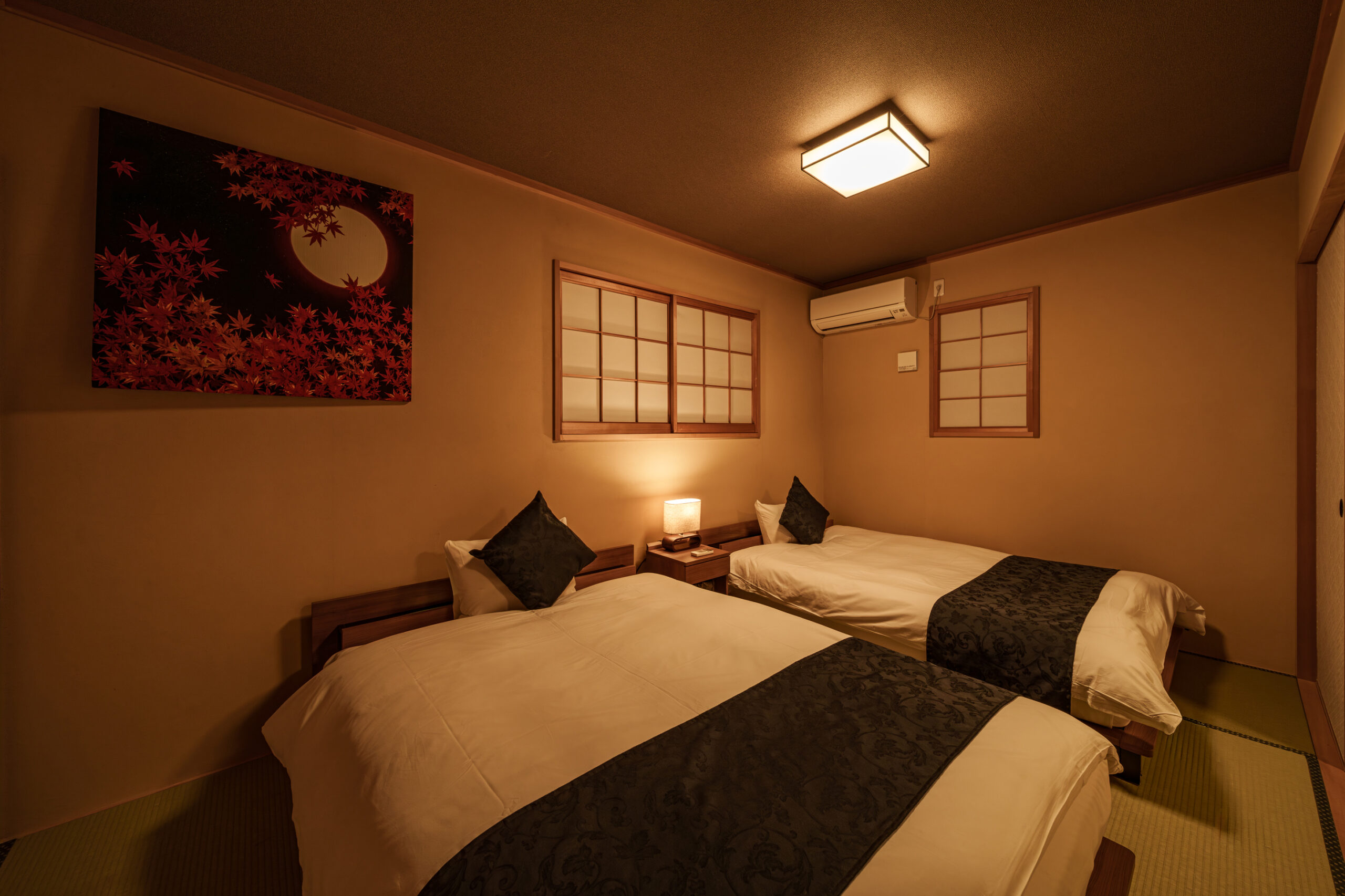 全部屋和室になっていますが、2階の寝室1部屋にはベッドを設定しているので、布団が苦手な方にも快適にお過ごしできます。